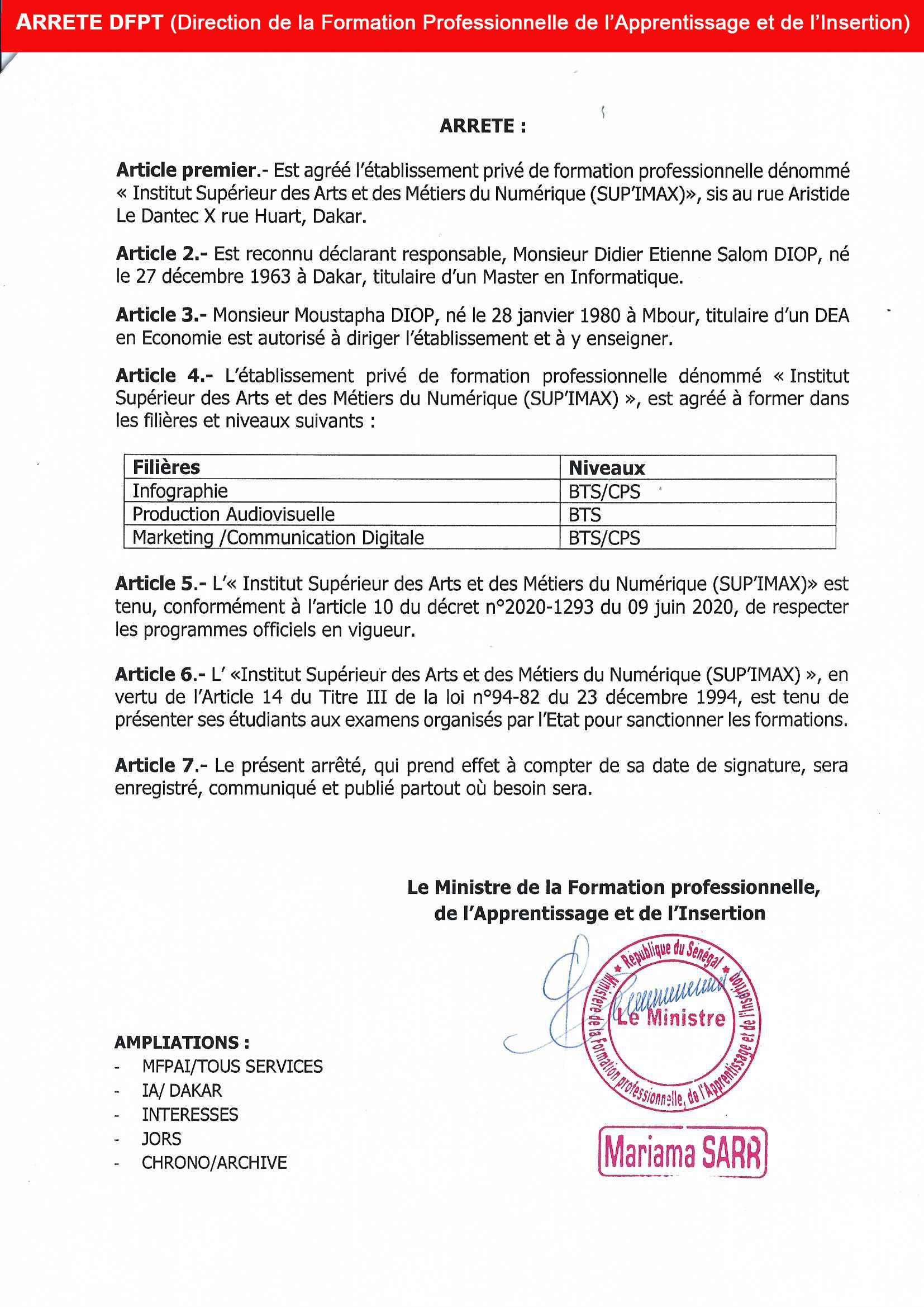 L'Institut Supérieur des Arts et Métiers du Numérique (SUP'IMAX) est un acteur majeur de la formation en multimédia. Depuis 30 bonnes années, nous formons les jeunes, renforçons la capacité des professionnels aux nouvelles technologies de l'information et de la communication.